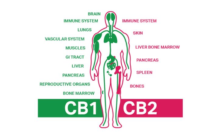 - Cannabinoid Receptors (CB1 & CB2) – These receptors are found throughout the body, with CB1 receptors primarily in the brain and nervous system (affecting mood, memory, and coordination) and CB2 receptors mainly in the immune system (influencing inflammation and pain response).